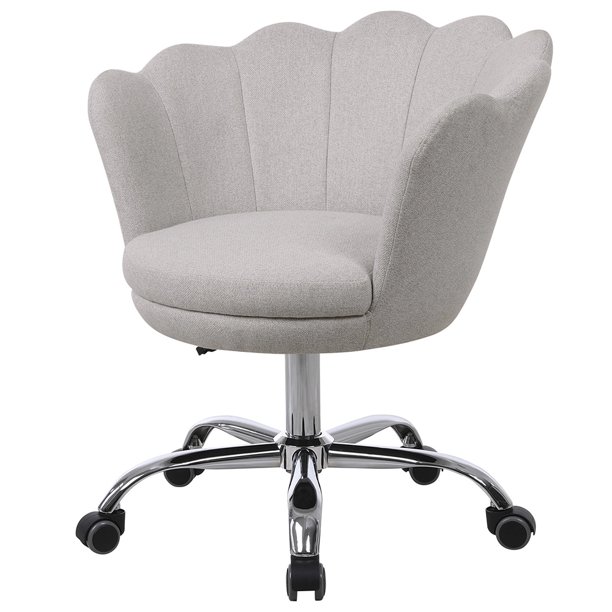 Beige Vanity Makeup Chair Modern Cute Desk Chair With Metal Base Ergonomic Back Caster Wheels Linen Fabric Accent Chair Height Adjustable Computer Chair For Home Office Bedroom Hotel W17240 Walmart Com
